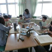 藤女子高等学校にて、卒園児が親子で陶芸に取り組みました。